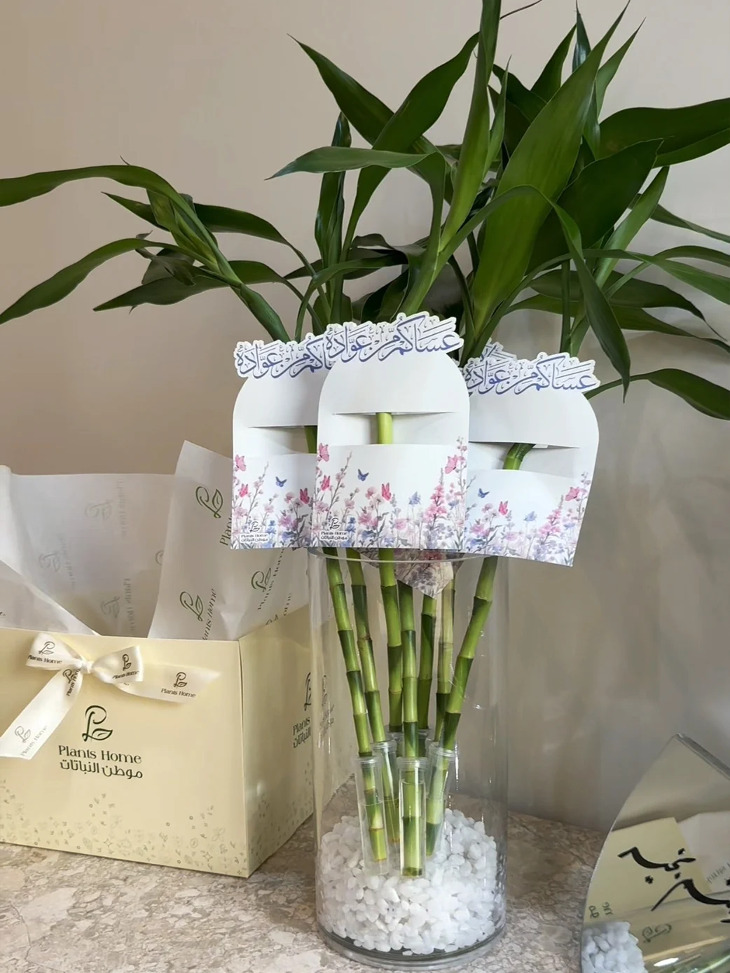 ✔ 6 سيقان بامبو طبيعية – نبات طويل العمر وسهل العناية، يرمز للحظ والنمو الإيجابي.