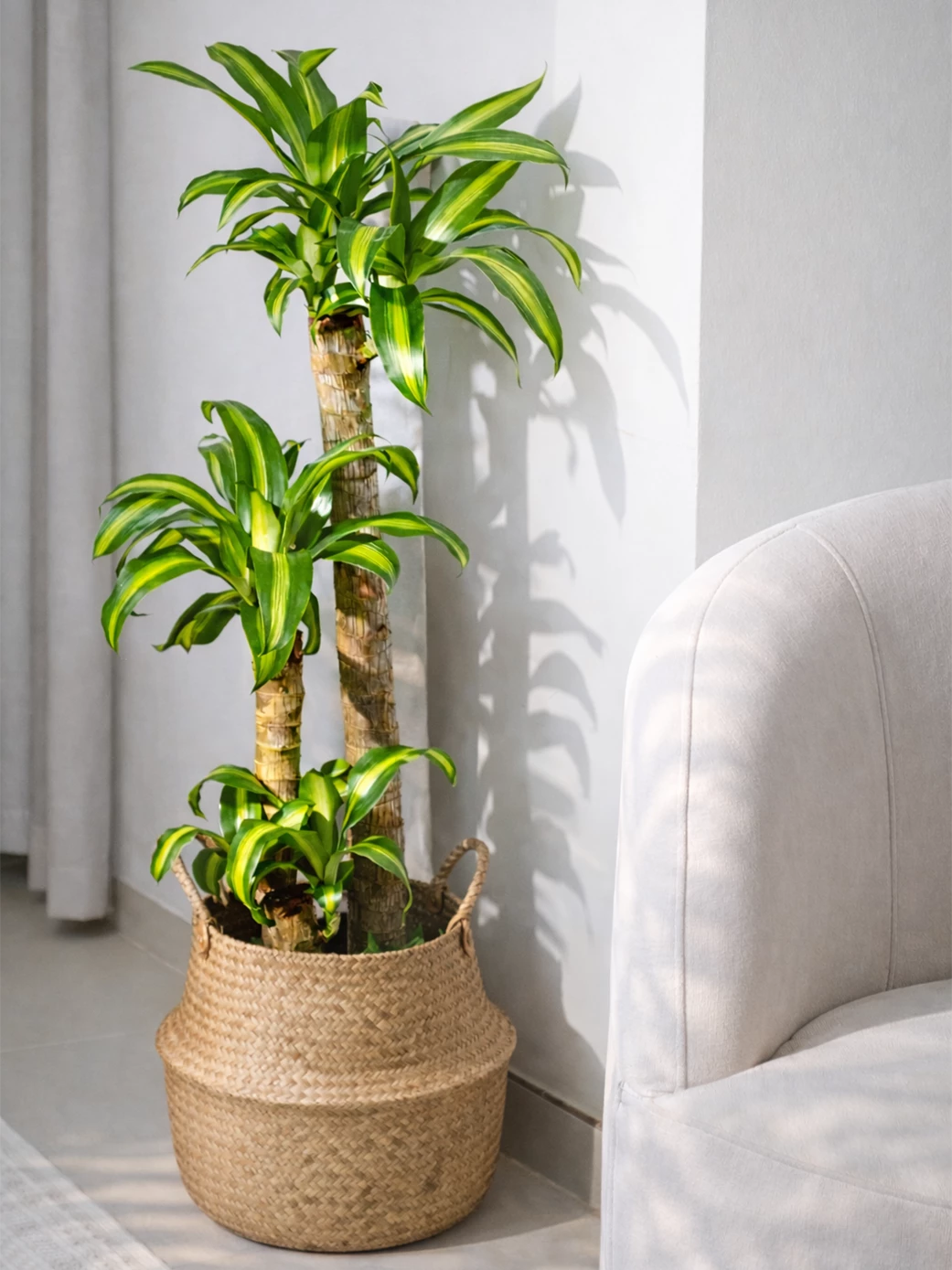 الخيار الأمثل لمن يبحث عن الفخامة والتحمل؛ فهي تشتهر بقدرتها العالية على تنقية الهواء والعيش في مختلف ظروف الإضاءة. تأتيكم بحجم كبير في مركن خوص فاخر يضفي لمسة ريفية دافئة وطابعاً طبيعياً ساحراً على زوايا منزلك أو مكتبك. تجمع هذه القطعة بين الأناقة العصرية وسهولة العناية، حيث لا تتطلب الكثير من الري، مما يجعلها هدية مثالية ومستدامة تدوم طويلاً. بفضل تصميم المركن المنسوج يدوياً، ستكون إضافة جمالية تخطف الأنظار في أي مساحة توضع بها. طول النبتة = (85سم)